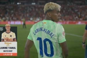 亚马尔助攻拉菲尼亚头槌先拔头筹,补时阶段亚马尔破门锁定胜局。巴萨取得联赛开门红。亚马尔被评为本场MVP。